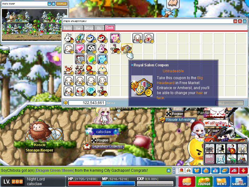 when i try item sort in my cash item my rp salon coupon is disappeared .. 當我嘗試整理cash道具的時候 我的rp美髮卷消失 .. 沒有堆疊 變成1個 (之前的圖片)