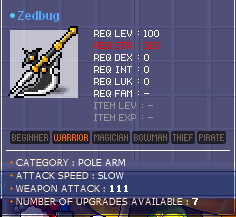 S> 111att zedbug (Lv.100 pole arm) clean