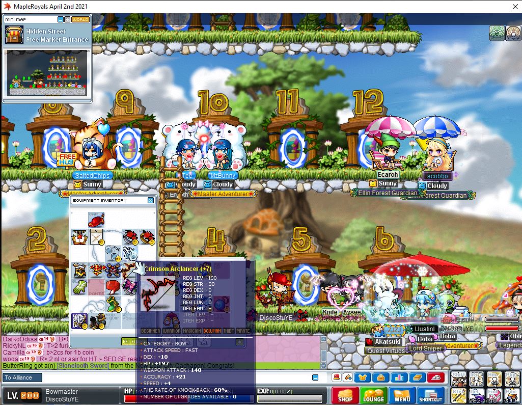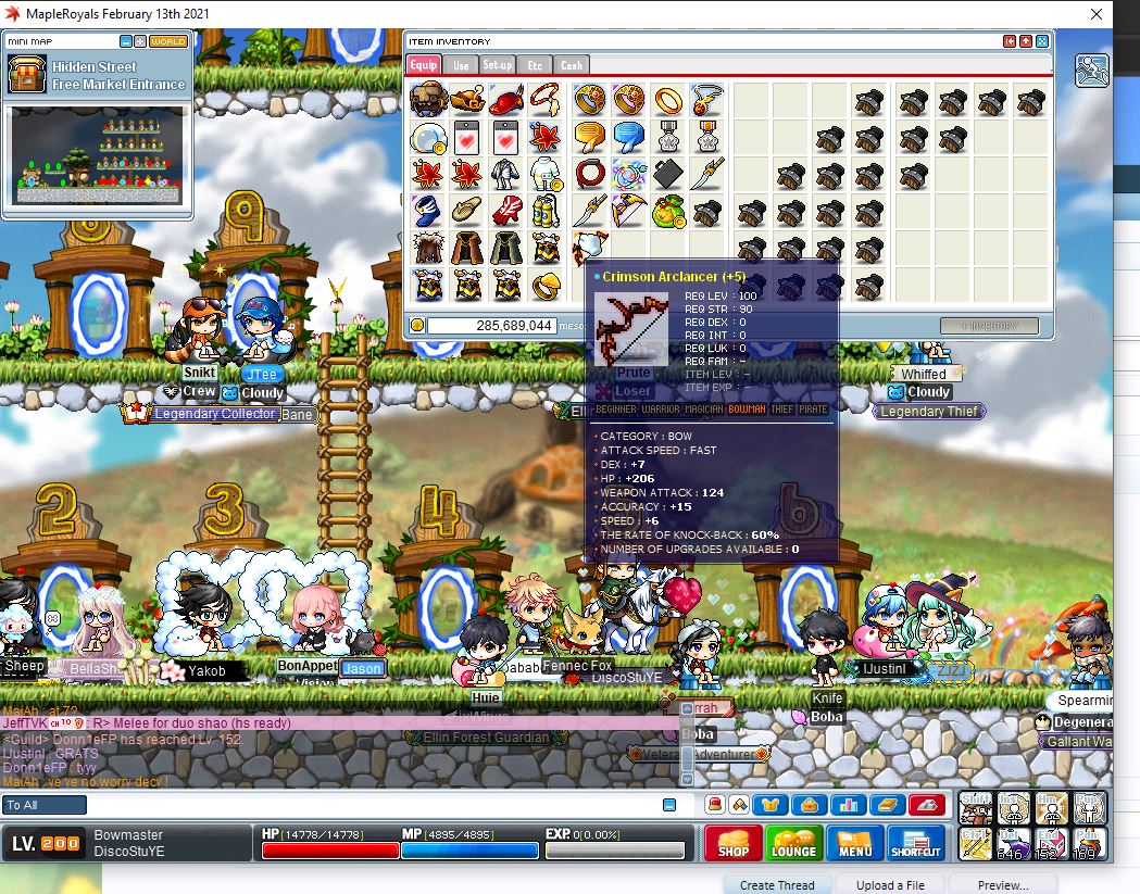 Thank you! it is my very first Arclancer I have ever crafted (and successfully scrolled), it started 102att & 3 dex and I scrolled 4/6 30% and last 1 event. Here is a thread on NLC crafting by @Sila (go down for Arclancer weapons) New iTCG crafting guide 2017 | MapleRoyals Perfect Clean Arclancer bow is 110att, 7 dex, 210hp and +8 speed, BETTER than DSB!!!! And requires only 90 STR to wield