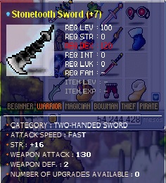 S> 130 atk Stonetooth sword