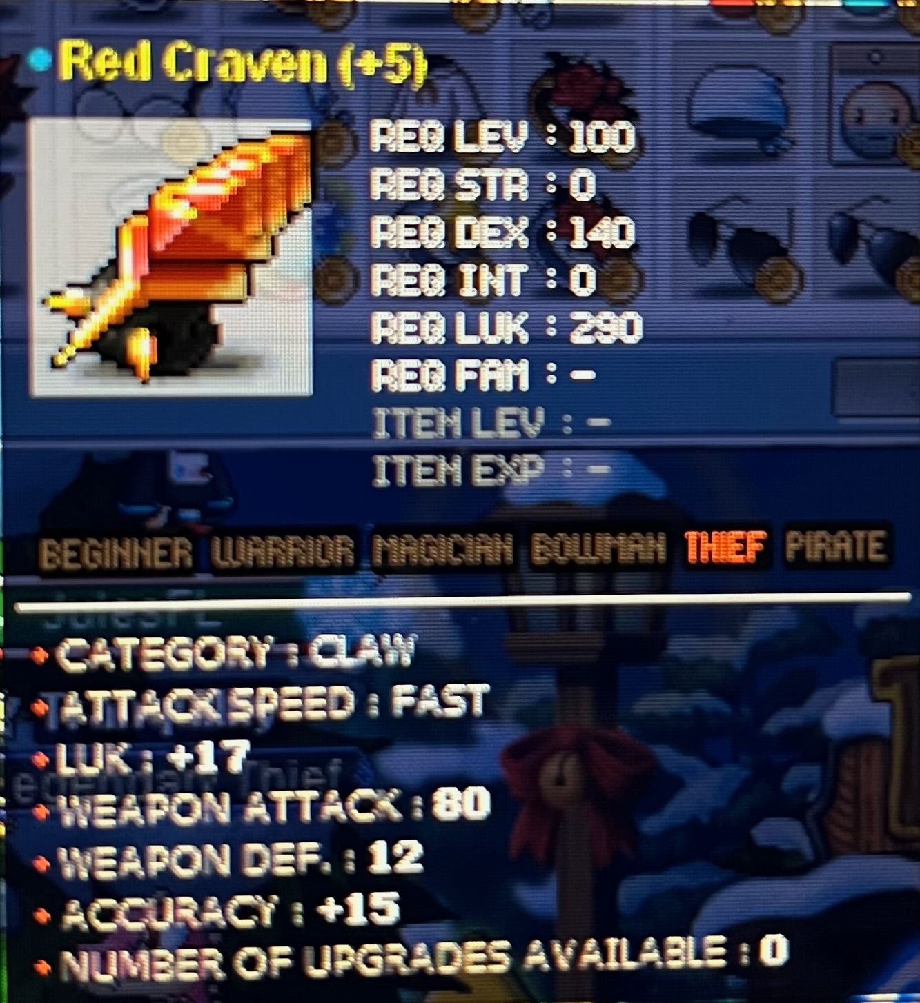 Hi i am selling a 17/80 Red Craven claw for 7 cs/ws i would like a quick sale of 7cs/ws. (2.8b) which is a pretty good deal in my opinion, ive been told it could be worth up to 3.6b I Rarely go on forums, so if you would like to contact me you can find me at @JULESFL in game. im EST and usually play from 9am-3pm and sometimes at night.