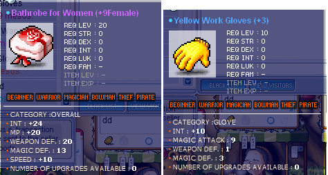 Hi everyone I sell the following items: +24INT Bathrobe (Female) C/o - S/B 850M - A/W 999M 19TMA Yellow Work Gloves (+10INT) C/O - S/B 999M - A/W 1.2B SOLD