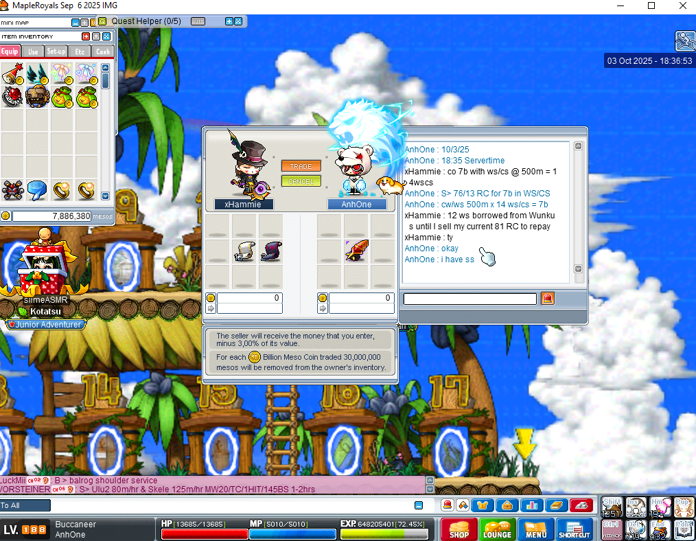 I will want to try to sell before reset tomorrow @Hammie @jereraffe I will be on from "servertime 10/3/25 16:00" to reset