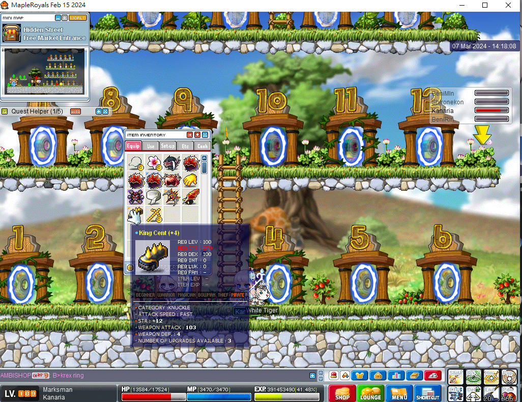2024/04/12 7dex/4luk goggles SB 3B @HolyNik AW No idea. Buy the items at FM 1-8 for AW if the price is below 2B. Shop owner "Kanaria". CS 550M WS 550M APR 9M MW 2.2B HERO WILL 2.3B Spoiler: Sold 2024/04/14 102/3 KC >108 KC now SB 4B AW 4.8B2024/04/06 13/79 RC AW 2.2B sold in game for 2B 2024/04/02 103/3 KC SB 6B @yang135135 AW 8B 2024/04/06 105 White Fangz sold in game for 1.9B SB 1.9B AW 2.1B 105 KC SB 1.8B @aike AW 2B 2024/03/27 Add a 13/80 RC SB 2.8B AW 3.8B Sold in game for 3.2B 2024/03/23 Add a 99/3 KC SB 1.4B AW 1.7B I scrolled it to 105 and sold it in-game for 1.8B. S/B 5.8B @RiverofTear C/O 6.3 B by @coffeethief 6B by @Laps A/W 7.2B sold to @Laps 2024/03/16 Update 105/0 KC now. SB 1.4 AW1.7 sold in game. 104/0 KC SB 1B AW 1.2B 1.1B sold in game 99/3 KC SB 1.3B AW1.5B sold in game. 2024/03/08 Update Add 1 99 /3 (105) ATT KC (named KC1) SB 1.5B @Ucchi 2024/03/10 AW 1.9B (Can buy it at FM 1-9 ) shop owner "Kanaria" 2024/03/12 Update Add 1 99/3 (105) ATT KC (named KC2) SB 1.5B AW 1.9 B sold in game for 160M LOL 2024/03/13 Update Add 1 104/0 ATT KC SB 1B AW 1.4B sold in game Spoiler: BOOOOM 2024/04/09 32/1 Single Earring AW 1.8B 2024/03/26 Add a 11/71 RC/4 slots SB 4B AW 6.5B