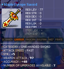 Selling this 97 Att (Max) Pyrope Sword A/W = 750m Accept Mesos & WS/CS