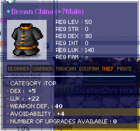 22 LUK / 5 DEX - Brown China Top (Lv. 50)