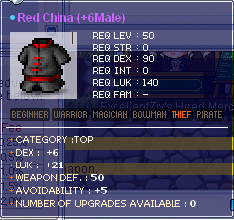 21 LUK / 6 DEX - Red China Top (Lv.50) SOLD