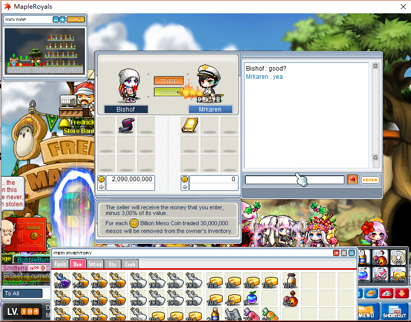 refunded 75.66m meso(after tax) to Bishof as traded extra 78m to me by mistake.