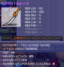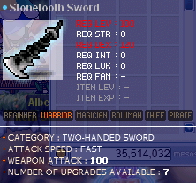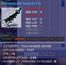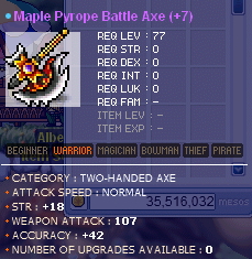 I'm getting rid of warrior weapons that I used to train, 2 stonetooths from gacha, and weapons that were given to me. Maple Pyrope Battle Axe (107 att 18 str 42 accuracy) no slot Doombringer (101 att 3 str) no slot Lion's Fang (95 att 9 dex 15 accuracy) no slot Stonetooth Sword (110 att 5 str) no slot Stonetooth Sword (100 att) clean Since they are not expensive items that people need to bid on, just tell me your offer and I'm most likely to accept it. PM, reply here or add me buddy in game. IGN: WahWahh Thanks!