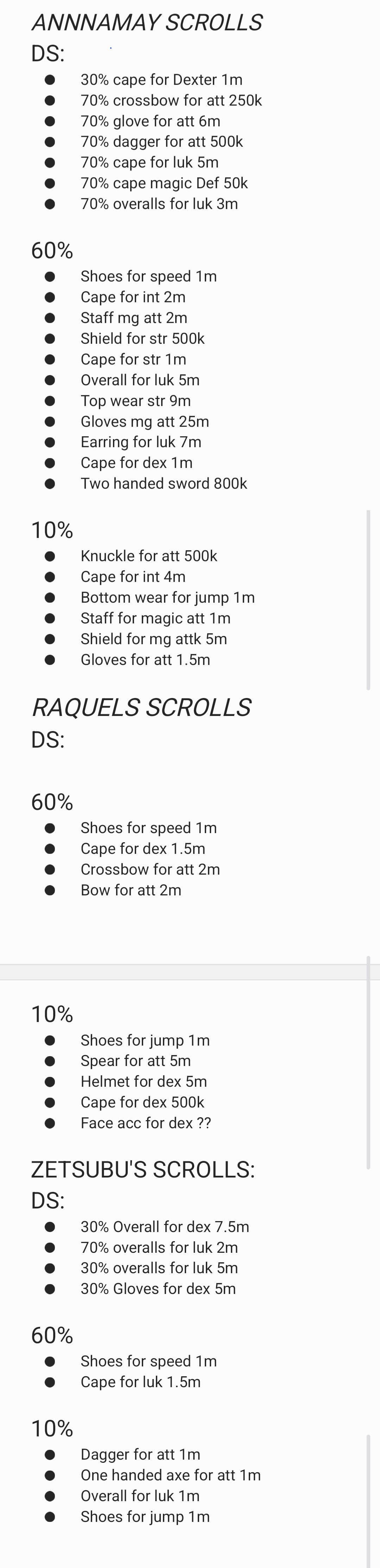 screenshot attached of scrolls and their prices. IGN: Annnamay, Zetsubu and Rahquel Willing to haggle too~