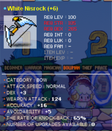 124 att 3 dex nisrock bow s/b:1.1b a/w:1.3b 124att 3 dex dragon shinner bow s/b:1b a/w:1.1b 102 att 13 str white fangz s/b:500m a/w:600m Drop me a msg if u interested, AHIHI Will sell after 36 hrs after s/b is made! BTW buying dragon scale/spirit 300k ea, power crystal 200k ea, need alots ((