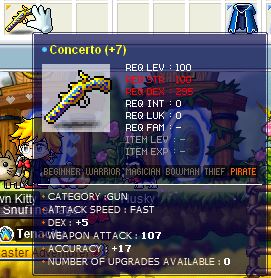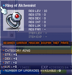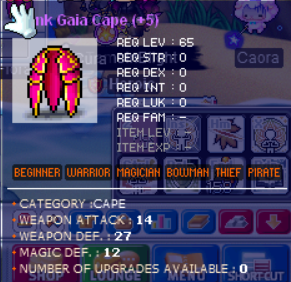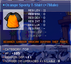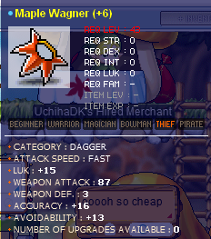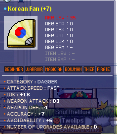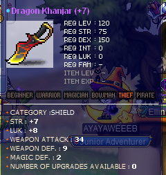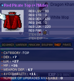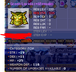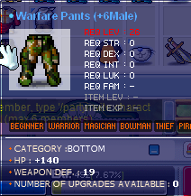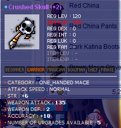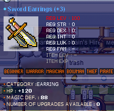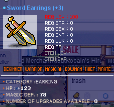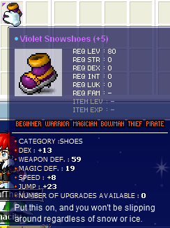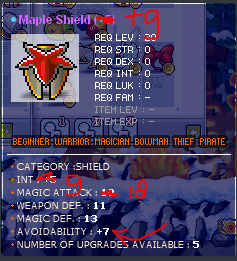 Scrolled the shield, thus added 10 INT 20 MATT Maple Shield. Also adjusted S/B and A/W on the VSS and the Red Skis.