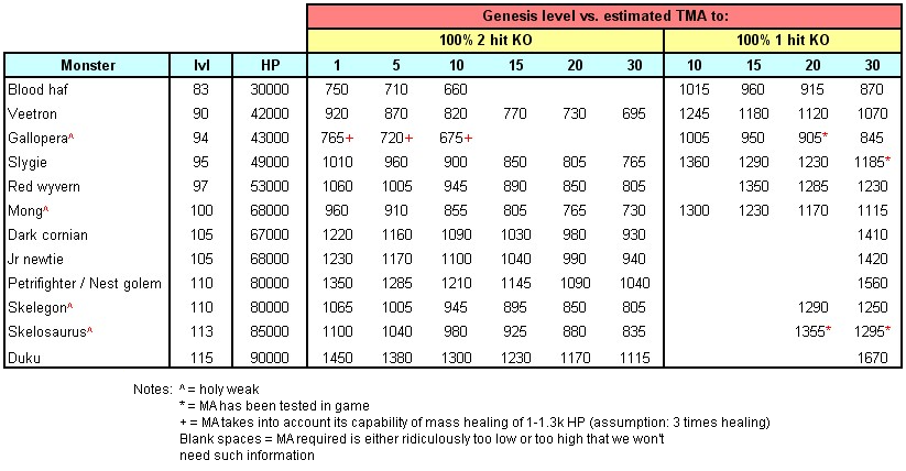Hi there, im building a new and my future first biahop here just wondered, how much tma needed for 1hit in lvl 120 (gen 1) harps and ftp?
