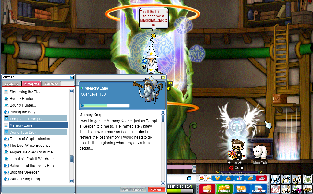IGN: HeroicHealer Problem: Memory lane quest no working Details: I can not advance through this quest because it does not give my bishop the option to interact with 1st job instructor for memory lane quest.