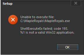 I've gotten a new PC and wanted to try downloading MapleRoyals. However, I keep getting this error message: