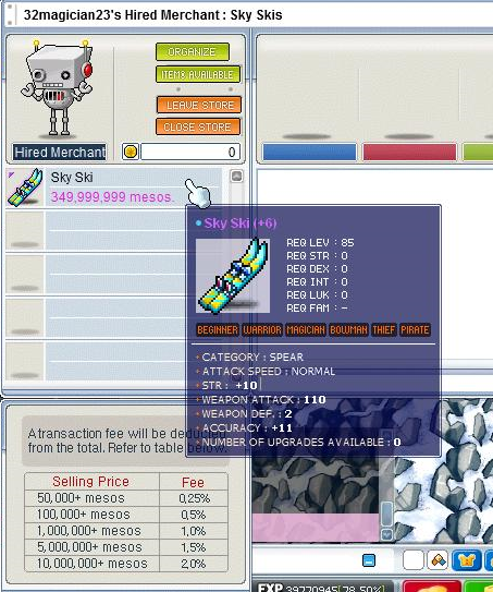 110 atk 0 slots sky skis, fm 18 ch 1 door spot "Sky Skis". It's up for 300m.