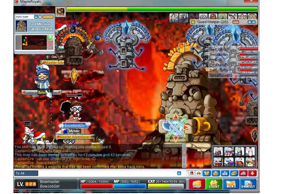 IGN:BowJobGirl SoulBlader NotEric ExcellentZiv Bernadette Problemced from zakum due to server crash Details:Just hope to get a rewarp thanks.